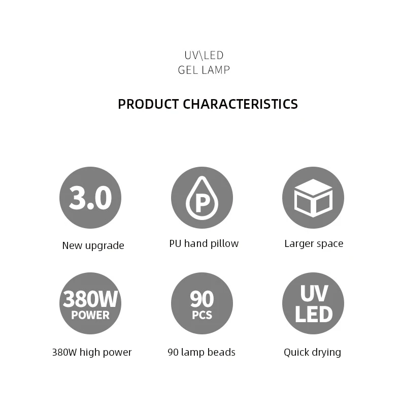 [حبات إضاءة متينة 90 قوة عالية] تتميز بخرزات مضيئة 90 واط وقوة عالية ، مصباح أظافر جل أقوى من معظم المنافسين الآخرين المتاحين. مع غطاء كامل من حبات مصباح الأشعة فوق البنفسجية/LED 90 ، أسرع مرتين من مسمار الجل الآخر 80 واط أو 96 واط ، مما يمنع الدائرة من التسخين الزائد وبالتالي تحقيق عمر طويل لمجفف الأظافر led.