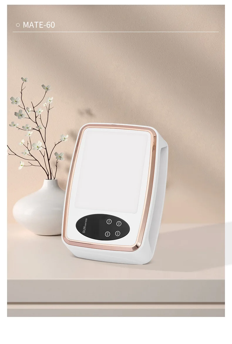 مصباح مسمار Mate60 [حبات إضاءة متينة 90 قوة عالية] تتميز بخرزات مضيئة 90 واط وقوة عالية ، مصباح أظافر جل أقوى من معظم المنافسين الآخرين المتاحين. مع غطاء كامل من حبات مصباح الأشعة فوق البنفسجية/LED 90 ، أسرع مرتين من مسمار الجل الآخر 80 واط أو 9 المزيد من المعلومات